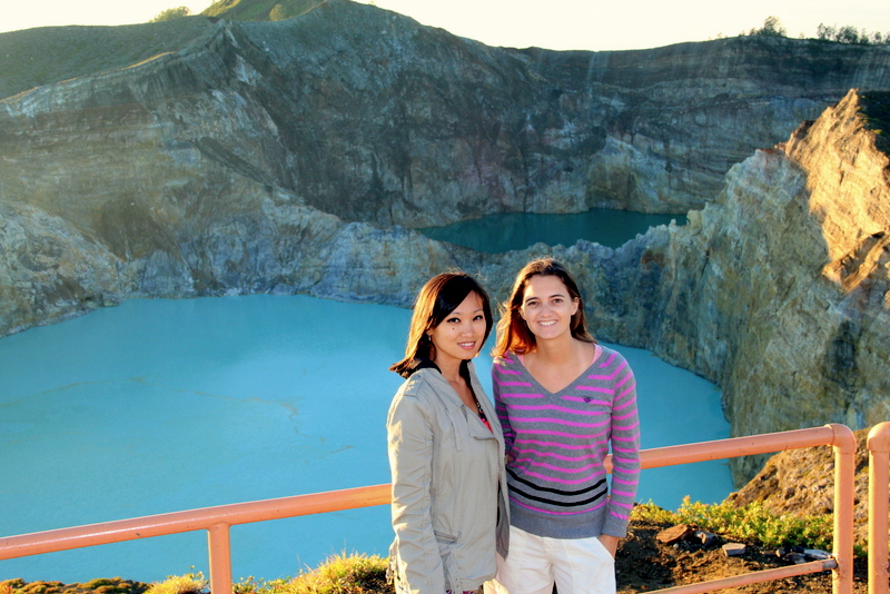 We drove for a few hours to the town of Moni, at the bottom of the Kelimutu volcano, and found a humble hotel. The next day, we woke up at 5am, drove the final kms, and hiked to the volcano viewpoint before dusk. As the sun rose, we began to appreciate the absolutely beautiful color lakes inside the craters, one turquoise blue, one emerald green (there is a third one, but we couldn’t see it). We were tired and cold, but it was definitely worth the effort. In a few minutes, the fog came in and hid the lakes, disappointing the travelers that were just climbing up.
