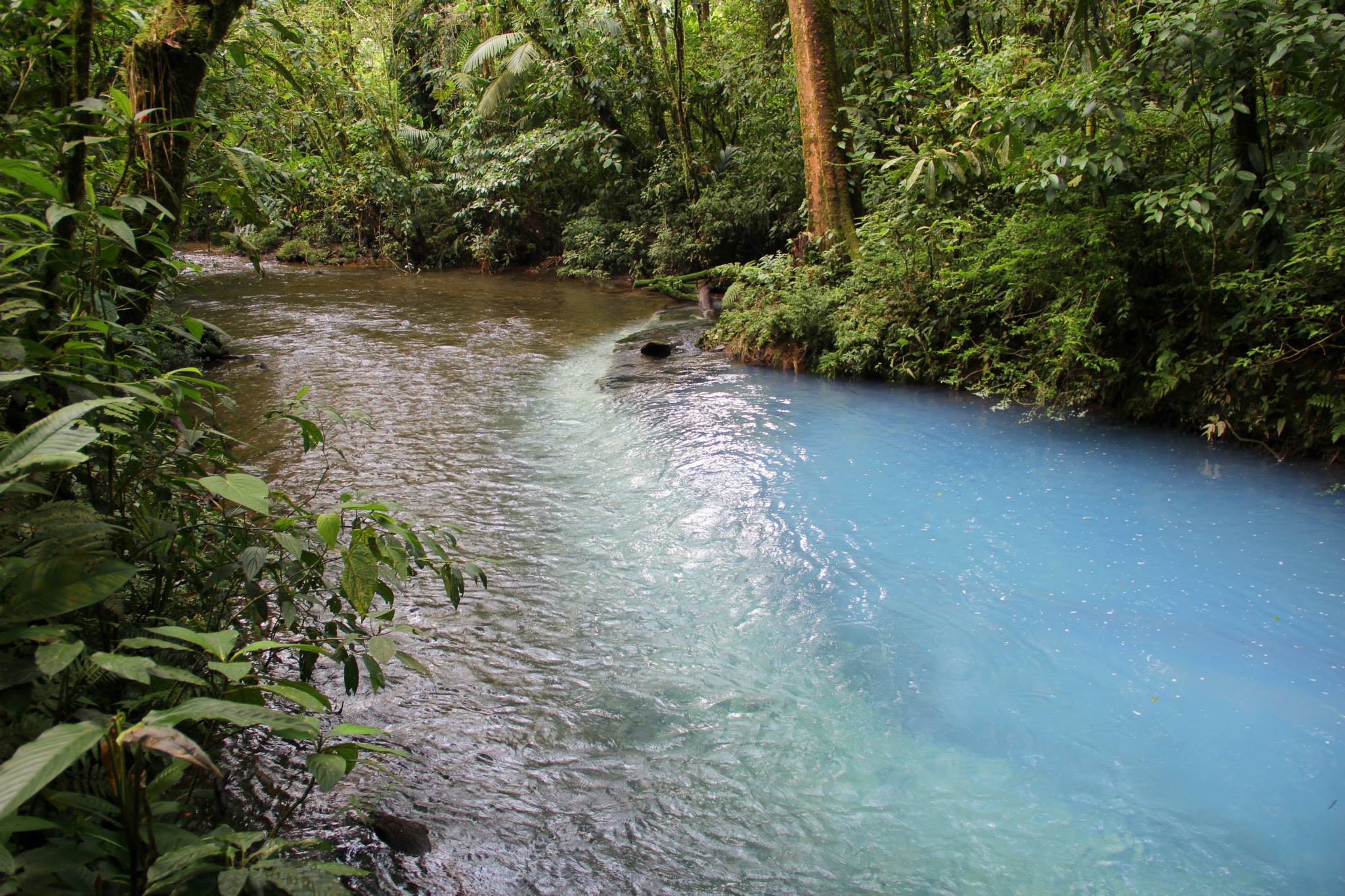 At the Rio Celeste National Park entrance, the rangers offer you a guide and claim that it is necessary… But you can totally do it on your own, just print a map of the trails that you can find online, or ask them to draw it for you. The hike took us 4-5 hrs, including going down and back up for the two waterfall viewpoints (would recommend only one, the one with stairs), and a quick lunch. The trail was very muddy and went up and down a lot, so the hike is more exhausting than one could think. But the views are so worth it. The river, which at times boils with volcanic activity, turns from orange into intense turquoise and explodes in a big waterfall, framed by lush green forest… spectacular!