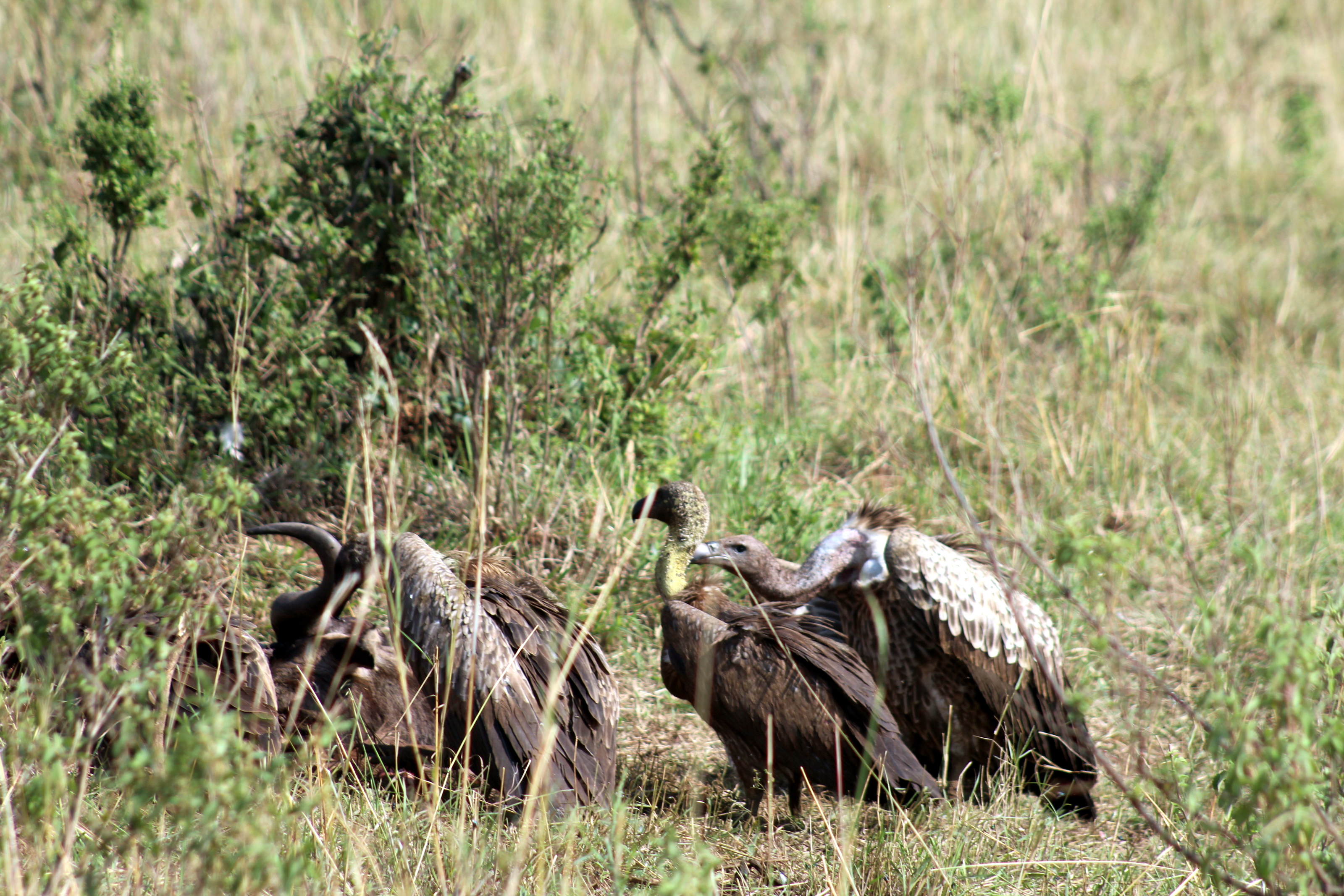 Then it was elephant time! We saw two small herds almost back to back. For African elephants, a herd is usually composed of one or few females (one of them dominant) and their offsprings; adolescent males eventually abandon the group. We enjoyed observing each heard for a long while, especially the super cute baby, who reminded us of Dumbo 😉 A bit later, we found a group of safari vehicles congregated around a majestic lion (middle-age male, with a mane but still blonde). Then some feasting vultures and a cheetah chilling under a tree. And all this as we crossed beautiful plains crowded with wildebeests…
