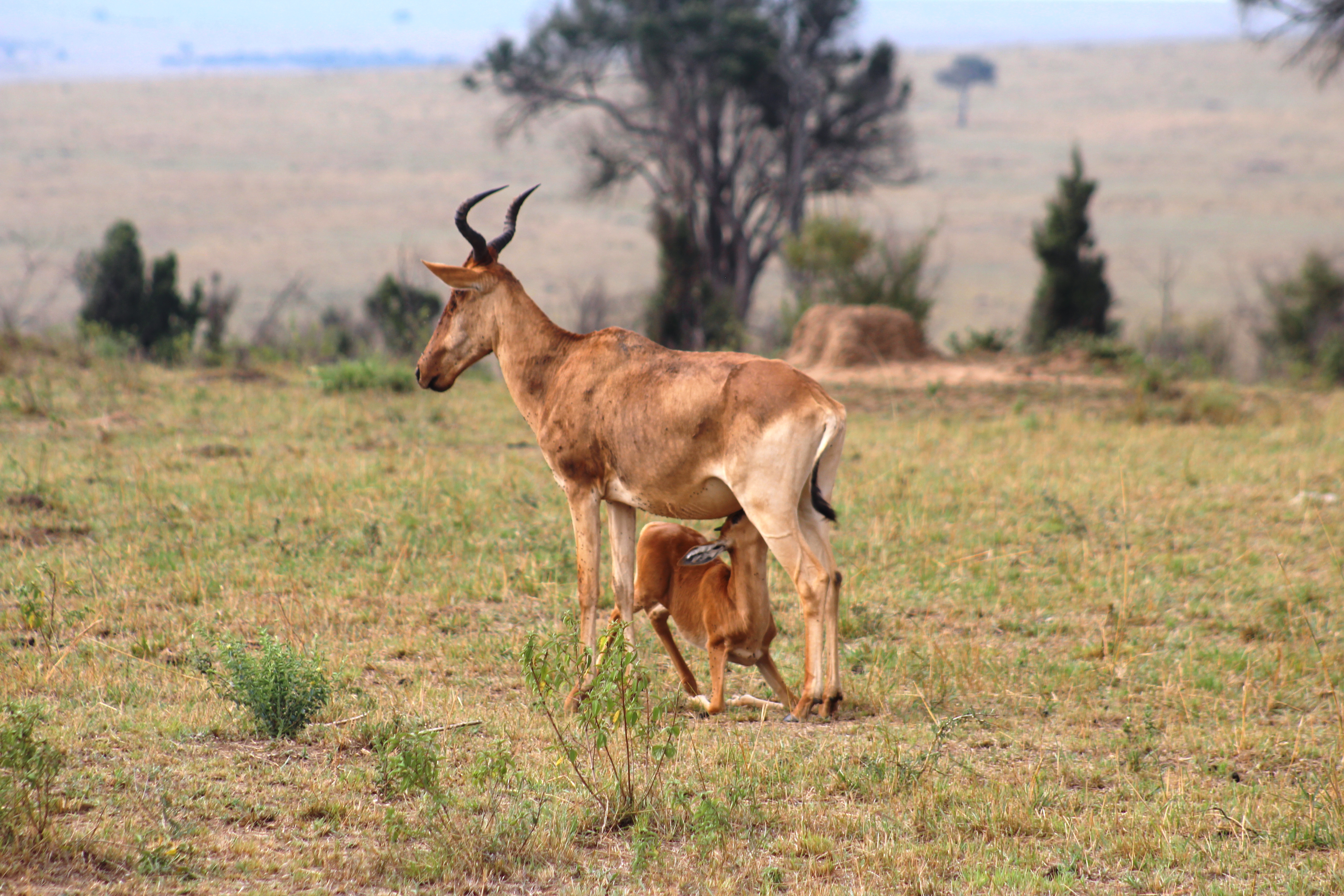 We took a break for lunch by the Grumeti river, where there were a few hippos. Very interesting animal, more about them in the next report about Naivasha. The migration had already passed, so we’ll have to come back for river crossings. In the afternoon, there were more indelible images, like a sucking Grant gazelle, a distant black rhino and the explosion of wilderness at the top of this post. We were happy campers!