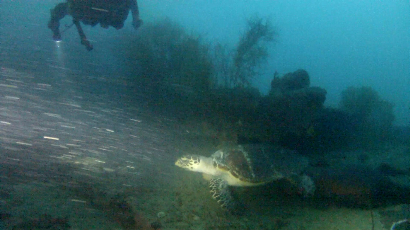 On the deck, Elena spotted a huge lionfish, and I found a camouflaged scorpionfish… apart from the classic clownfish and batfish, and colorful soft and hard corals. Joel, our dive master, signaled to point at a big turtle that was hiding under a piece of metal. After 30 min, it was time to start ascending, though I would have stayed much longer exploring all the nooks of the ship.