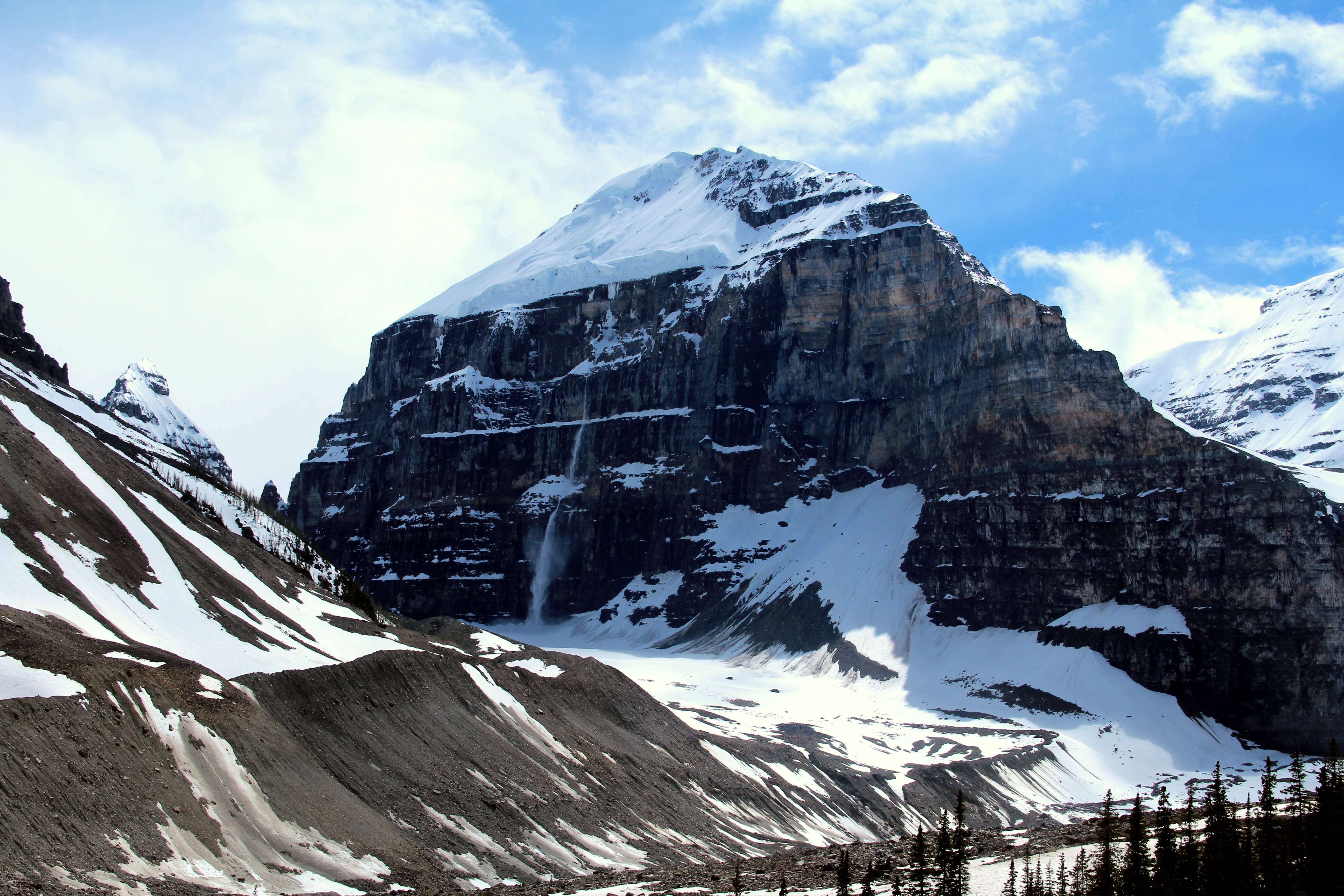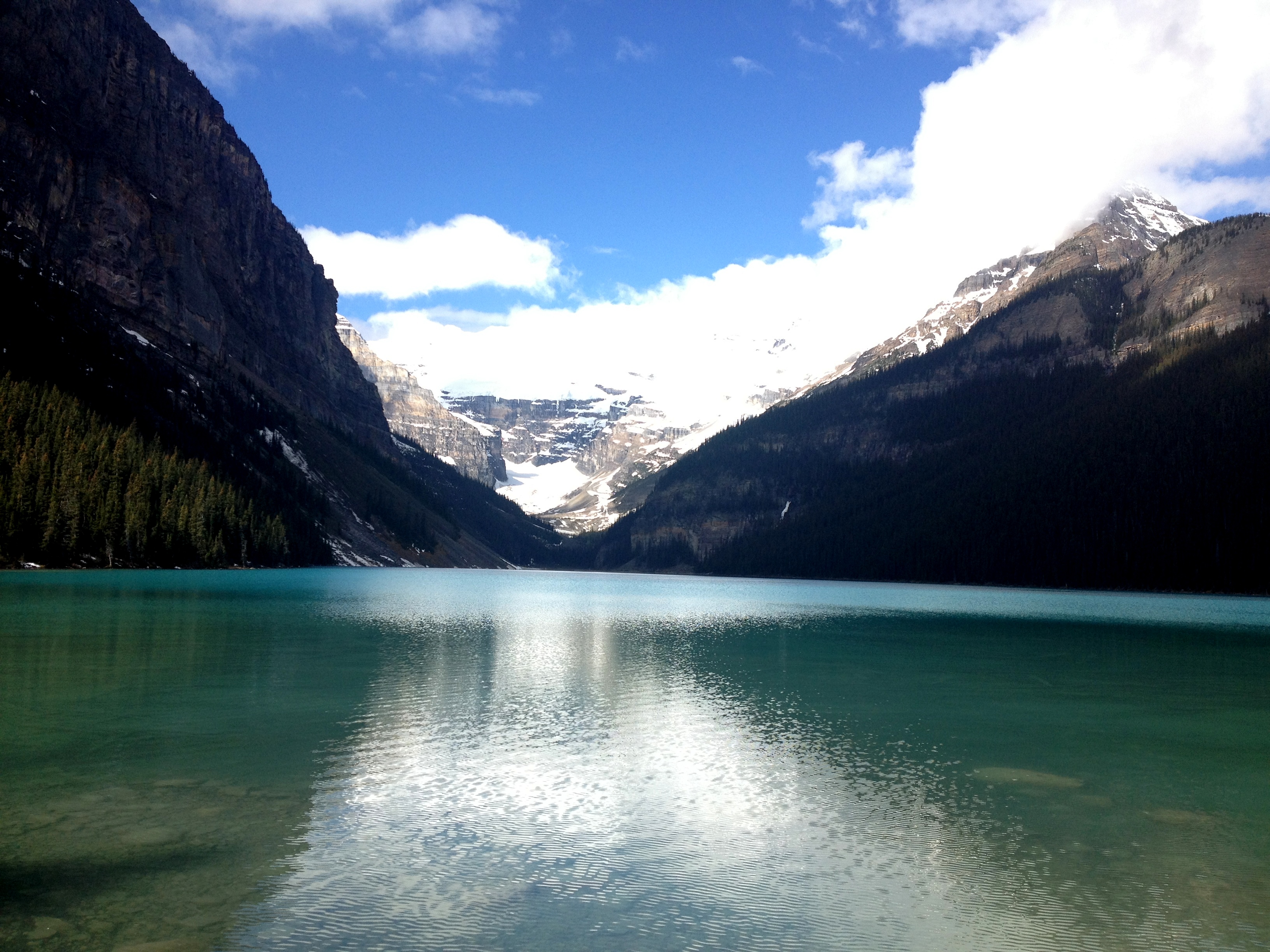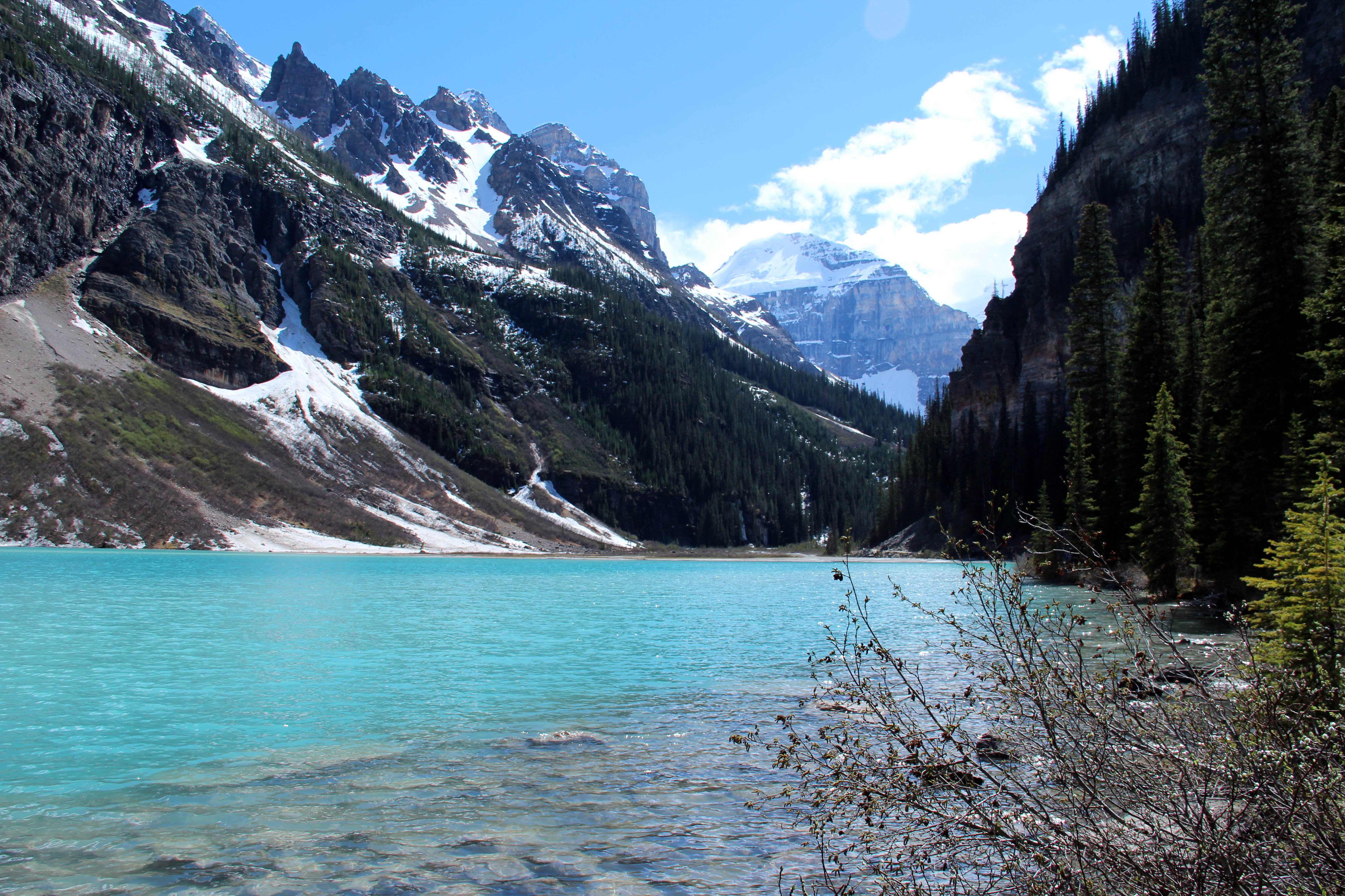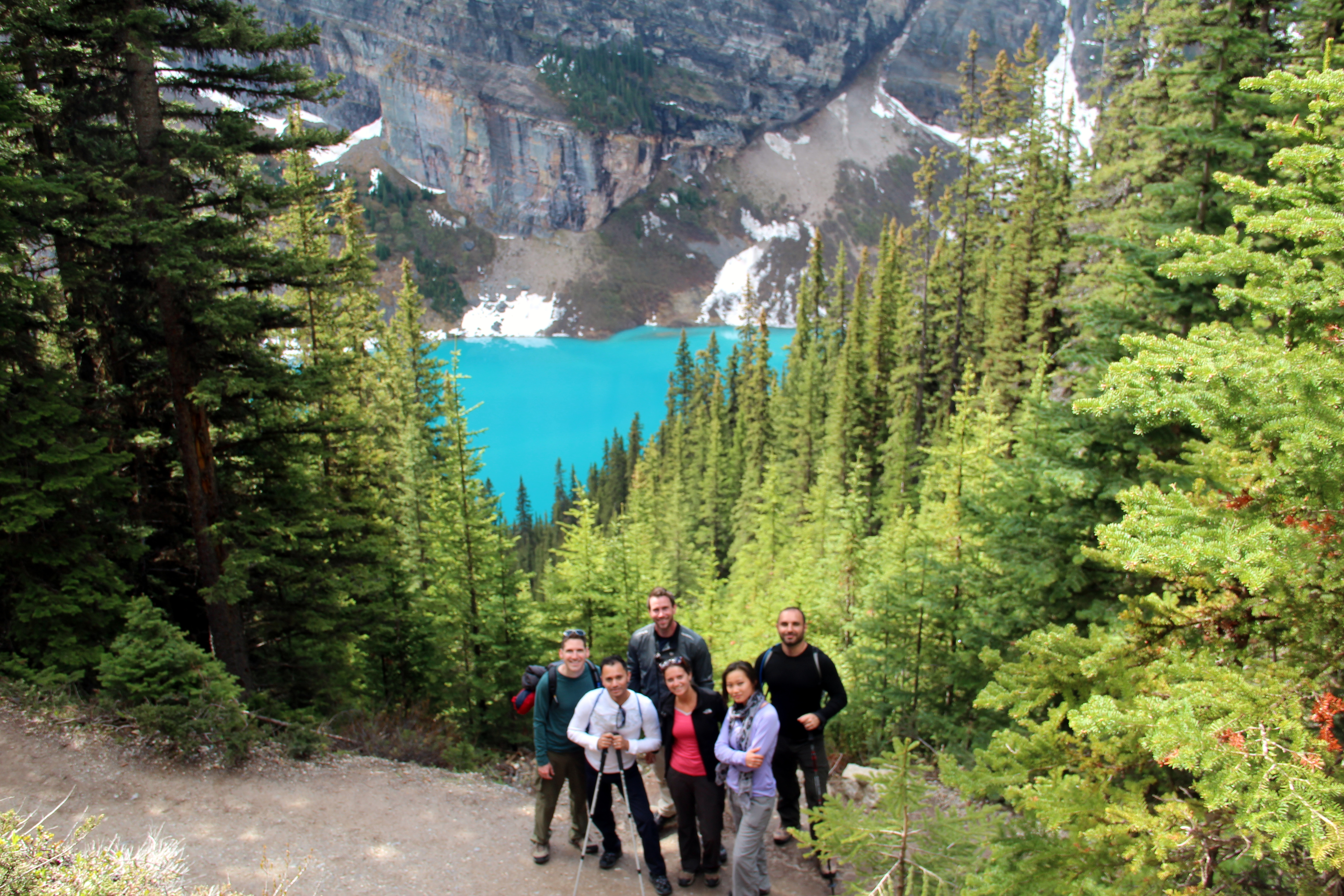 By the time we make it to the last teahouse, I’m exhausted and starving, but extremely happy that the sun has accompanied us most of the time. After recharging, we continue up to the Plain of Six Glaciers and then start the way down. The snow is starting to melt, and we witness a small avalanche on a rocky mountain that we’ve nick-named “The Wall”. We complete the 12 mile loop back to Lake Louise, which looks more gorgeous than ever. This was definitely one of the best hikes of my life!!
