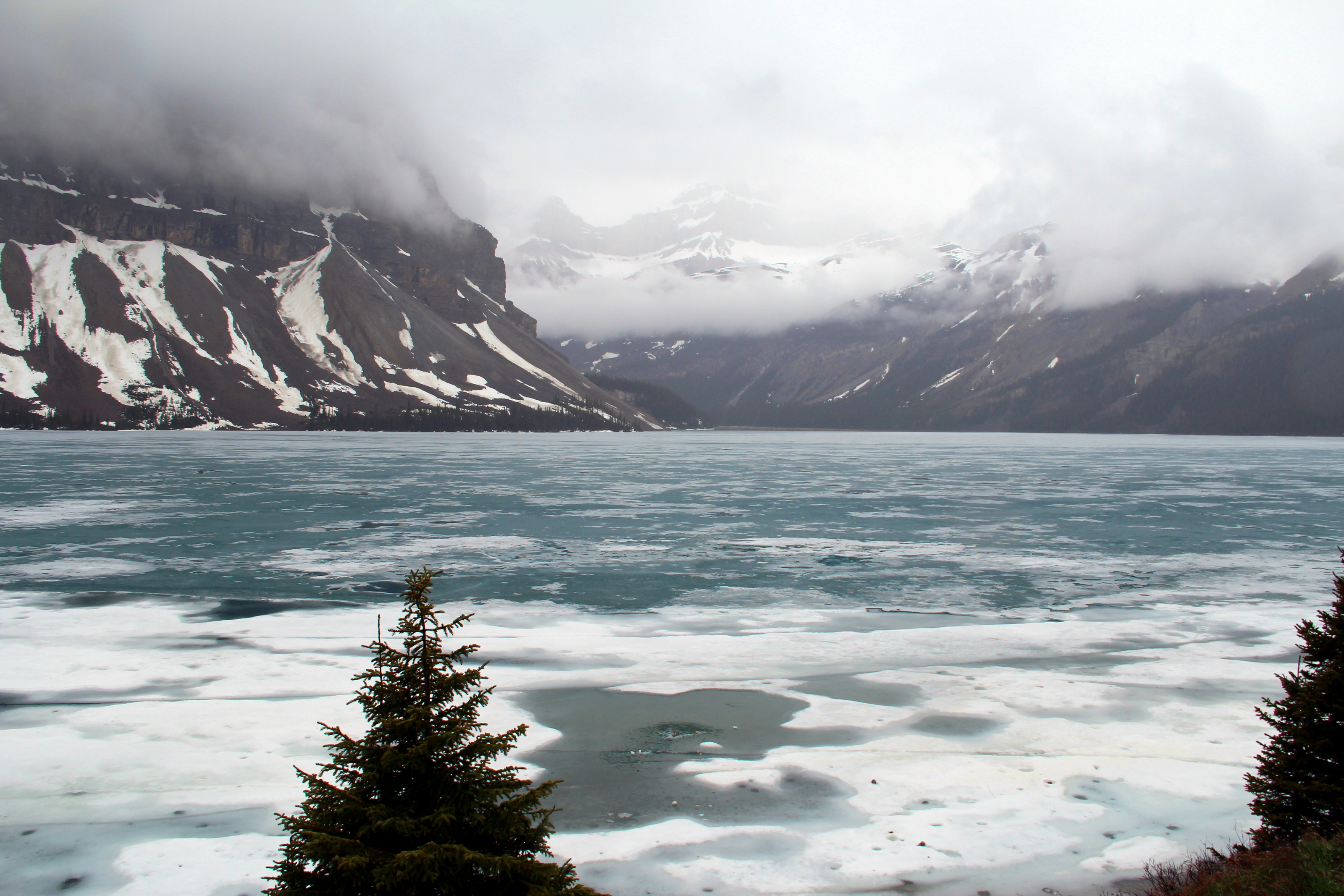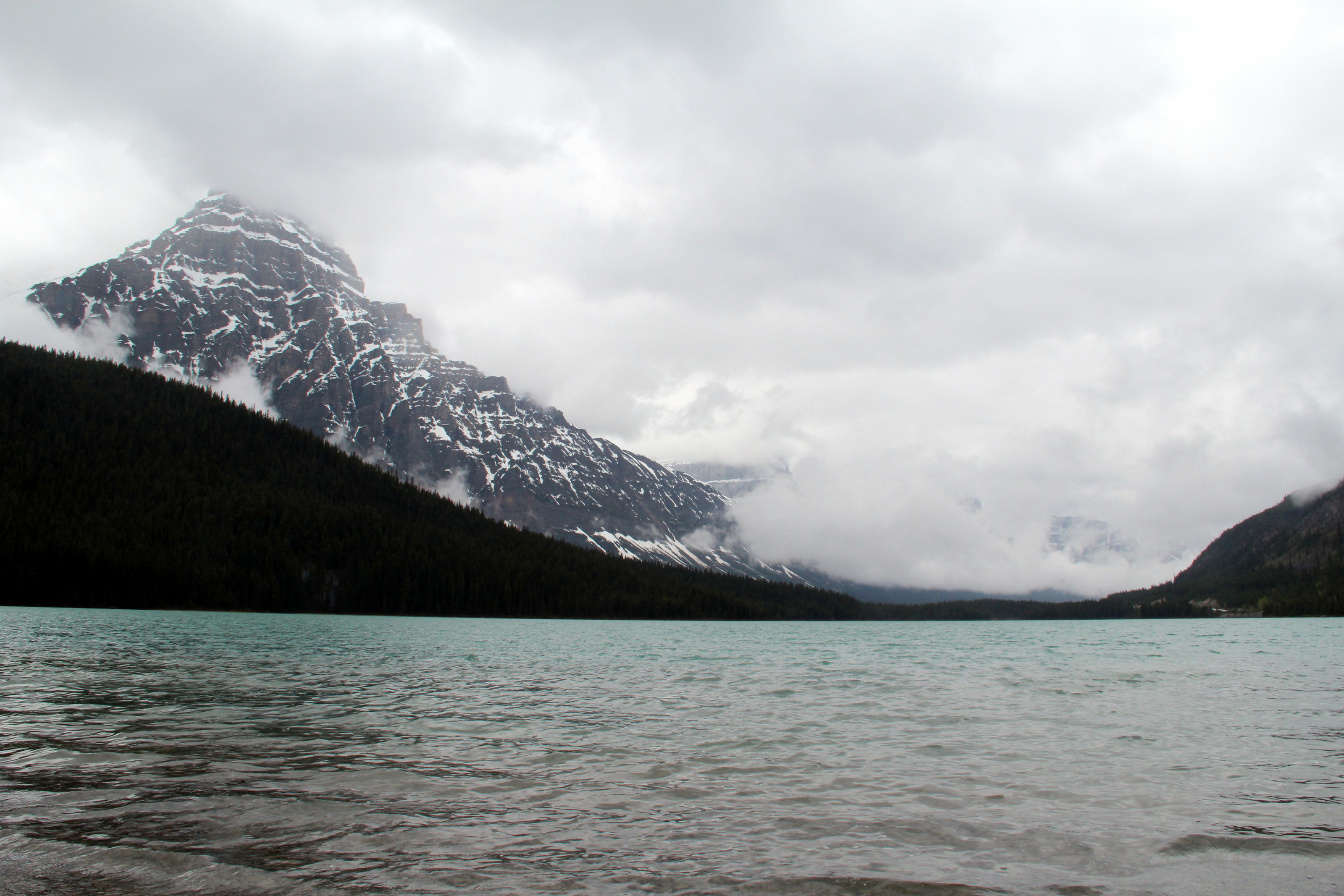 We rented an SUV and stayed in Banff town, a quite charming place, with lots of nice lodges. On our first day, as we drive the 45 min that separate the town from Lake Louise, we start to get excited about the wilderness around us and the endless hiking possibilities… But we also realize that the weather is terrible; not only cold, but also windy and cloudy, with intermittent rain and snow. Going ahead with the long hike we had planned didn’t make much sense, we would have to hope for better luck the next day. Instead, we decide to drive the Icefileds Parkway through Banff and Jasper, and stop in as many view points as possible for short hikes (tip: get a good map!)