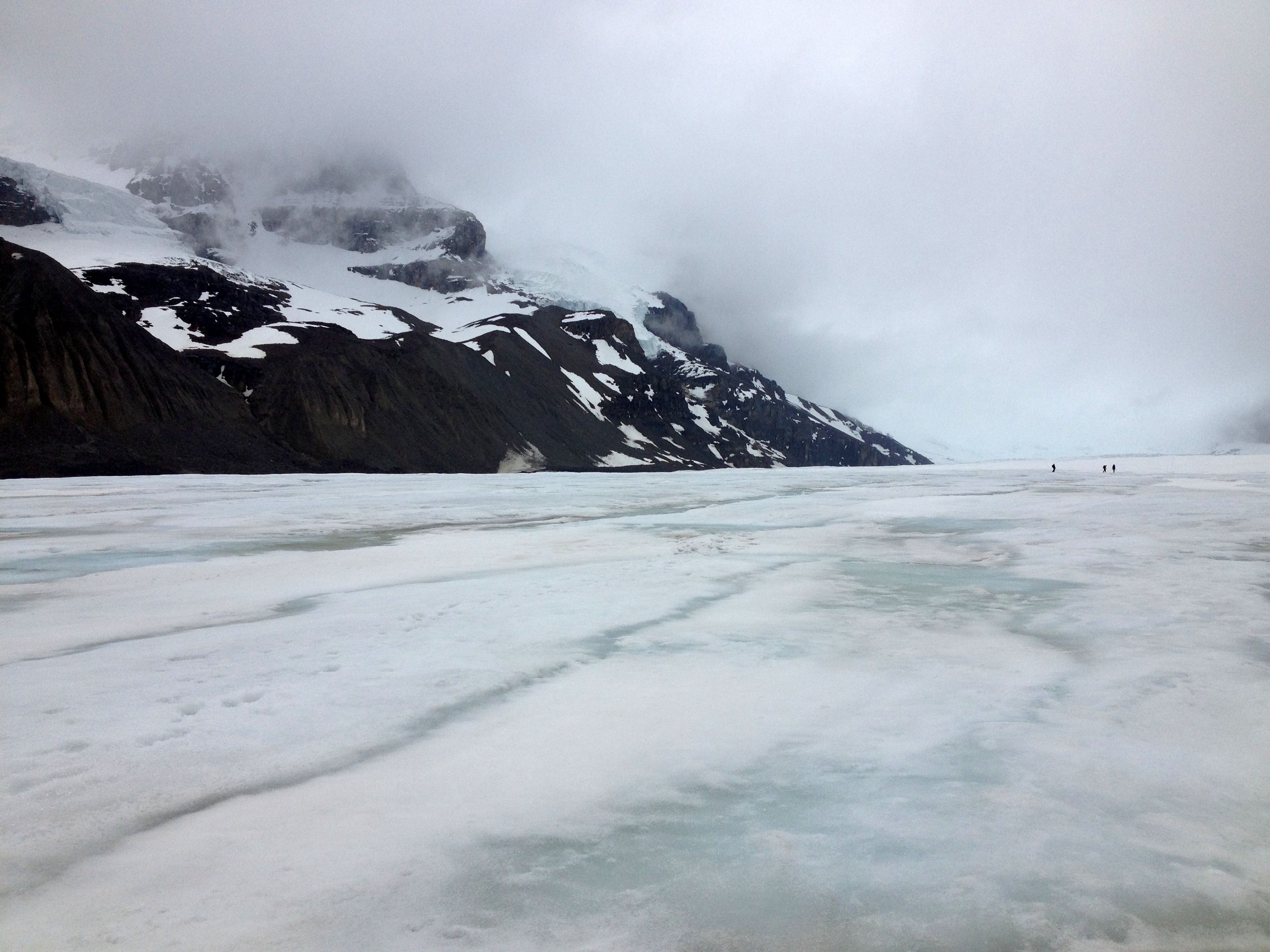We continue driving north, stopping at the Mount Amery viewpoint, where the Mistaya River looks cyan, and at the Weeping Wall, and… wait, is that a bear? Yes, a small black bear that probably just came out of hibernation and is looking for food. After devouring our lunch sandwiches, we take a short hike on the Columbia Icefield, a massive area covered in glaciers. True it’s not as beautiful as, say, Argentina’s Perito Moreno, but it’s quite impressive.