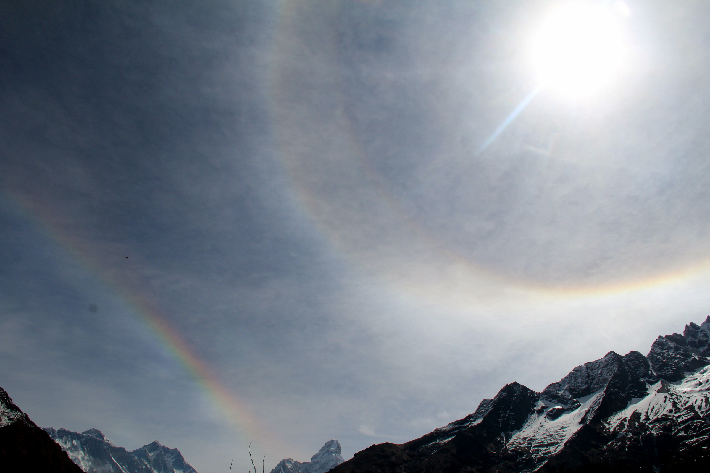 On our 4th day on the EBC trek, we left Namche at 8am and headed to Tengboche. An uphill beginning set us at above 3,500m and gave us some magnificent views of the Himalayan range and some crazy light effects. The beautiful Ama Dablam, ahead to the right, would guide us the whole morning. 1.5 hours of mostly flat trail got us to Sanasa, and 1 hour of descent put us in Phunki Tenga. Here, the restaurants on both sides of the hanging bridge were the last opportunities for food and water before the 2 hours steep climb to Tengboche, so we grabbed an early lunch.