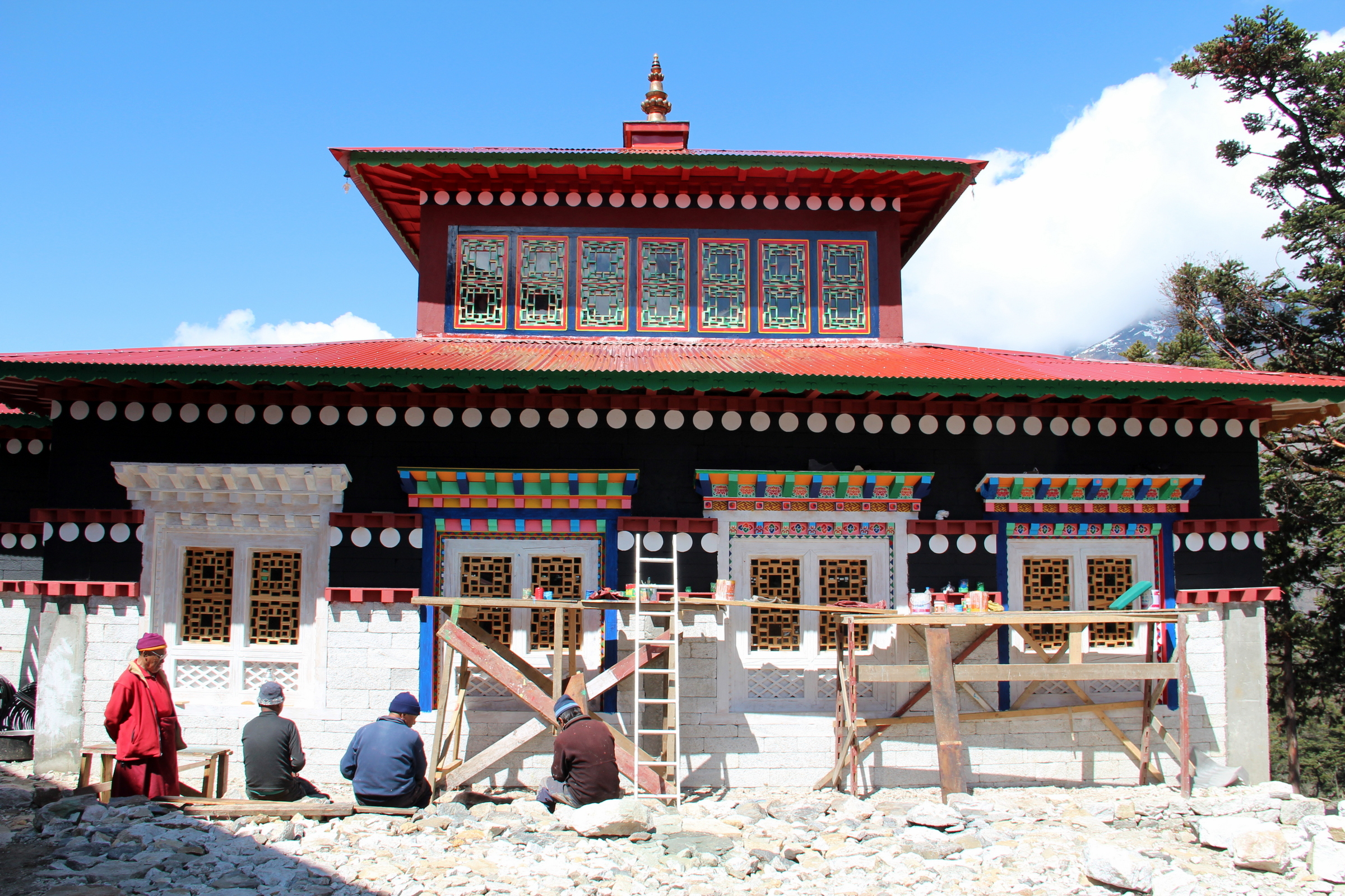For our 5th day, we decided to take an extra acclimatization day in Debuche. This day is not “mandatory”, as the one in Namche and the one in Pheriche/Dingboche. But if you’re opting for Dingboche for the following night (130m higher than Pheriche) and planning on skipping a night in Tukla, an extra day early on will make you feel stronger at higher elevations. We hiked back up to Tengboche and explored the gompa. The top floor and the monks dorms would need rebuilding, but at least the lower floors and the new building, just being finalized, were salvaged. We climbed up the hill in front of Tengboche as fast and high as possible, to improve our acclimatization, then down to Debuche and beyond, and quickly back to our teahouse. It was cold, and we couldn’t wait until the owners started the dong-fueled heater.