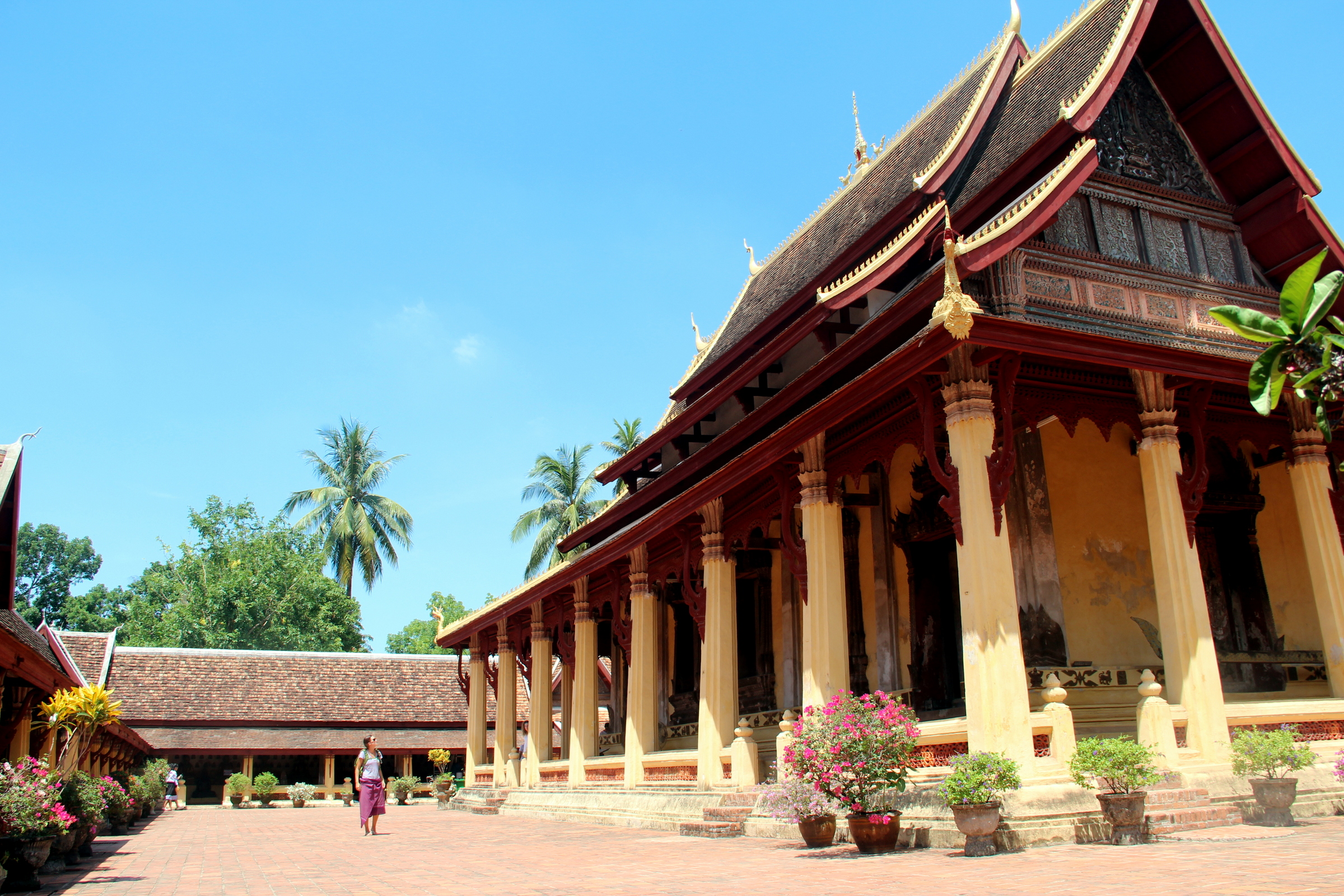Continuing west, we checked out Wat Mixai, Wat Ong Teu Mahawihan and Wat In Paeng, plus some of the business streets of the capital. By then, we were so saturated that we decided to skip the famous stupa Pha That Luang and the statue park of Xieng Khuan. Instead, we figured out our Vietnam visa, went to get a long, relaxing massage, and burnt the last of our kip in street food.