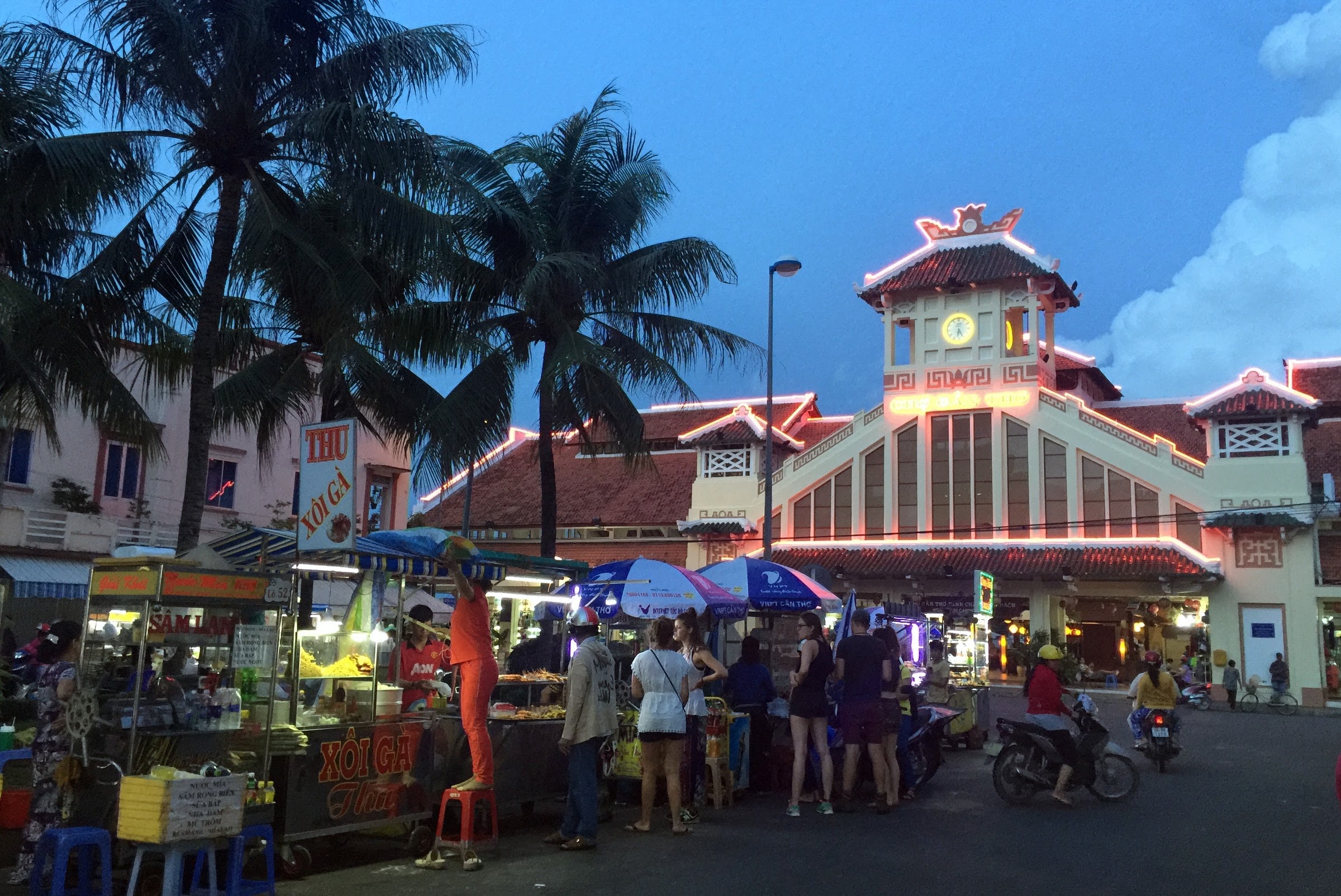 As we walked up and down, we were solicited by several boat operators, mostly old women. We arranged a private tour for the following day for VND 350,000 (~$15), after a short negotiation and pre-paid a deposit. Because the famous floating markets ran early in the morning, there was little to do the rest of the day… let’s get a massage! We failed to find a blind masseuse place we had read about, and ended up walking for two hours in random, uninteresting streets on the other side of the Cai Khe canal. We walked back and stumbled upon a small salon right by hotel, where we got not very professional but still relaxing massage for VDN 120,000 (~$5). As the sun was going down, we made our way back to the market area, where lots of food stands had popped up. We ate octopus fried balls, shrimp and scallion crepes, sticky rice sweets and more, and drank a few delicious fruit shakes; my favorite was probably the jackfruit one.