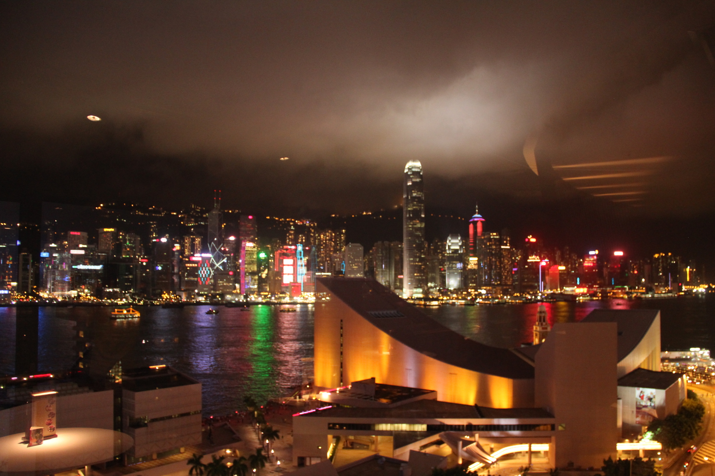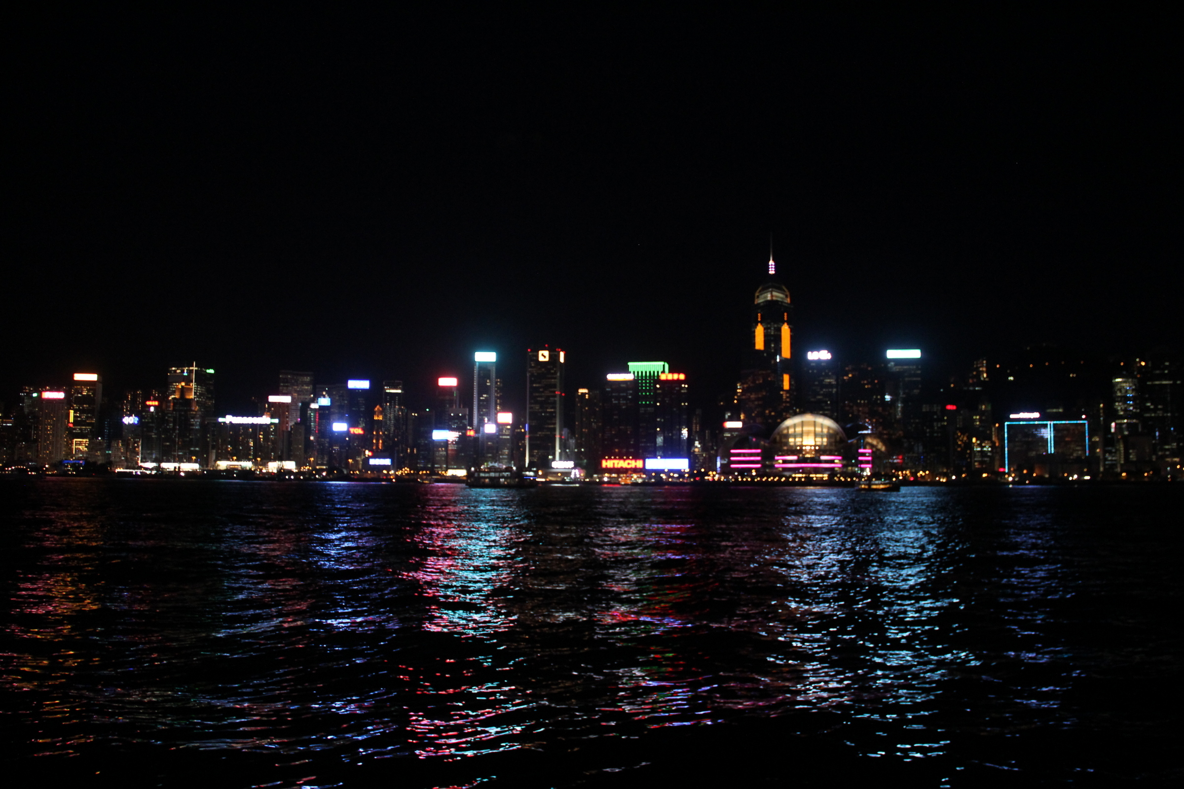 Shortly before 8pm, we walked down to the Tsim Sha Tsui waterfront promenade and the Avenue of Stars. HK’s copy of the Hollywood’s Walk of Fame was crowded with locals, expats and tourists alike. The illuminated skyline across Victoria harbor was absolutely amazing, one of my favorite sights ever. The light and sound show was rather underwhelming though, with just a few buildings “active” with blinking colorful lights, and bland music. I enjoyed more once the show was over and the crowds dissipated, just looking at the magnificent skyscrapers reflecting in the calm water.