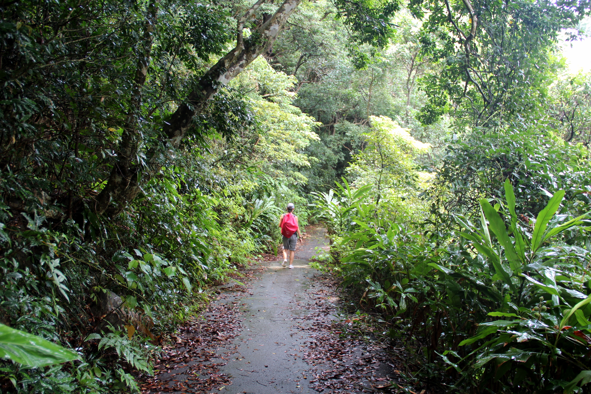 On our second day, we were hoping to do what is likely the best day hike in HK: the McLehose trail section 2, including Long Ke beach… but the weather looked as bad as the previous day. Instead, we decided to hike across HK Island, a trail that would take us to some of the highlights we had pending and provide enough shelter spots. We took the Star ferry once again and crossed all of Central. Because it was the morning rush hour, the escalators were working on downward direction, so we had to walk up the stairs and steep streets. Around Mid, it was interesting to see how most HK professionals live, in dull skyscrapers perched on the hills. Instead of taking the Victoria Peak tram, we continued on foot via Old Peak road. Eventually, the road entered a forest area, and the views became better as we gained altitude. After about an hour, we reached Victoria Peak, right on time to avoid a thunderstorm. The Peak has an official viewing platform (HK$ 48, ~US$6; www.thepeak.com.hk/en/3_1.asp), but you can enjoy the same great views of the bay and the city from the rooftop of the nearby mall The Peak Galleria.