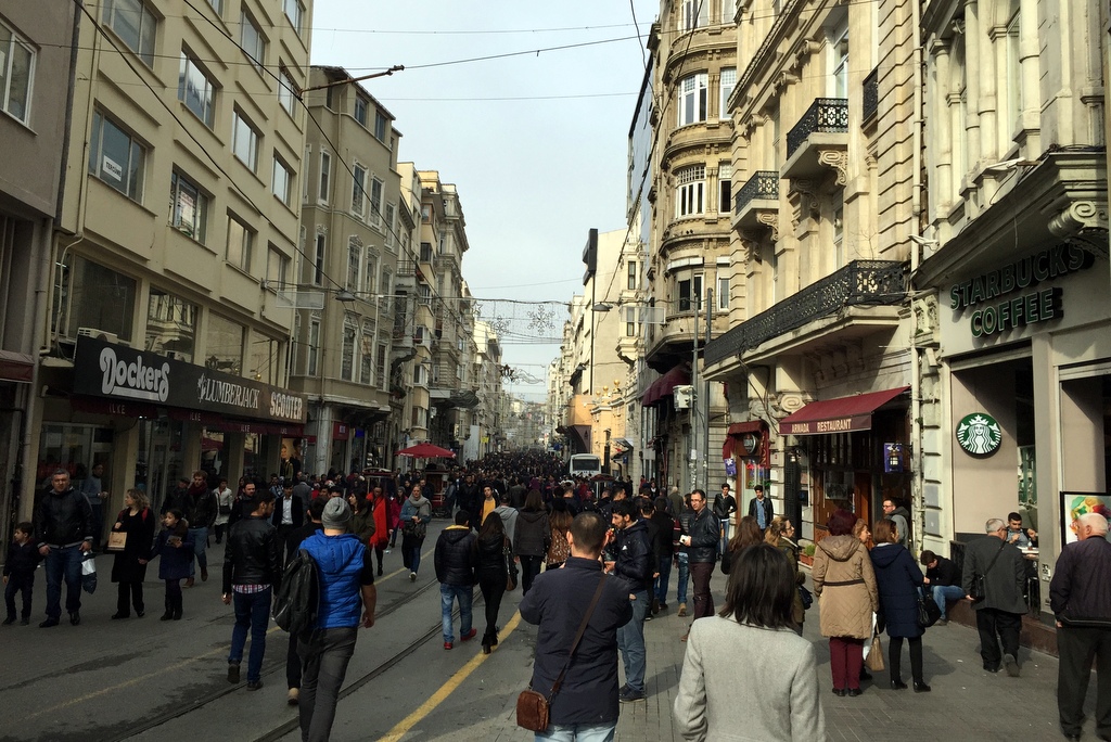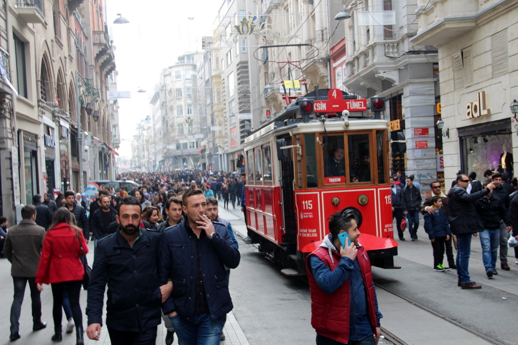 From there, we took Istiklal Avenue all the way up to Taksim Square. This is Istanbul’s main artery, and it shows. There were hundreds of people walking around, shopping and eating, in endless stores; from modern clothing brand shops to handmade sweet stands. We enjoyed a long walk, getting lost in some side streets. Suddenly, we heard a ring sound and soon saw the traditional tram coming up… such a picturesque sight! When we reached Taksim, we were unimpressed, and the Marmara Hotel rooftop, which has the best views in the area, was closed. So we decided to head back to Sultanahmet.