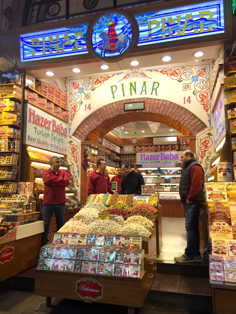 We exited the Topkapi enclosure after about two hours, without even having seen everything, and treated ourselves to some roasted chestnuts. While snacking, we walked north-west on nice pebbled, commercial streets. We soon reached the Spice Bazaar, a miniature version of the Grand Bazaar that we actually enjoyed much more. Although the shops sell the same repetitive teas, sweets and souvenirs, it is much smaller/manageable and feels more authentic. I particularly liked the shops on the external side of the bazaar, we found good deals there.
