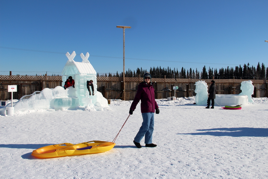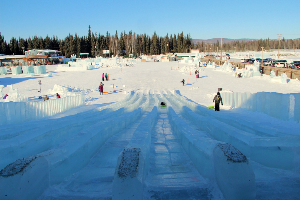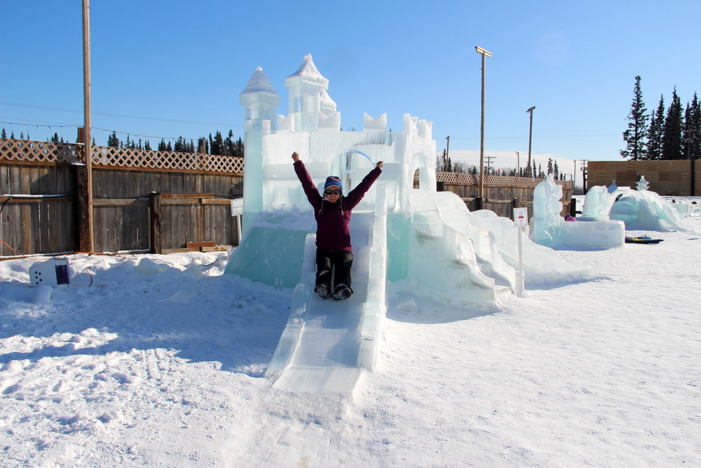 This mind-blowing ice sculpting contest takes place in Fairbanks every March, and artists from all over the world come to compete in the Multi-Block Classic and Single-Block Classic. When we arrived, we found out that the event is much more than a competition, it’s a lively festival with dozens of sculptures plus a kids park with ice slides and bunch of other ice attractions (castles, trains, a maze, igloos, an ice rink, etc.). We saw that most people had sleds and asked if they were for rent; no, people just owned them… but if we found any abandoned ones, we could just take them, people leave them behind for others to use. Scored, we got an awesome double sled! We played like kids in the castles and ran the ice slide a few times, it was so much fun.