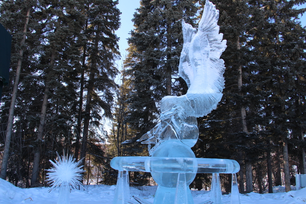 But before all the fun, we would have to earn it. We landed in Fairbanks in the middle of Friday night and found that our luggage had been lost somewhere between LA and Seattle. Still wearing jeans and light shoes, we got the first taste of Alaska cold arghghgh breathing outdoors was painful and our rental car was frozen. We decided to go to sleep and go shopping at REI the next morning, since we could return anything we’d buy. We ended up getting a call from the airport very early, as we were waiting in line with a shopping cart full of ski clothes… which we abandoned right there – sorry! Once we were wrapped on every single piece of winter clothing we own, we headed to the Ice Park, where the World Ice Art Championship is hosted.