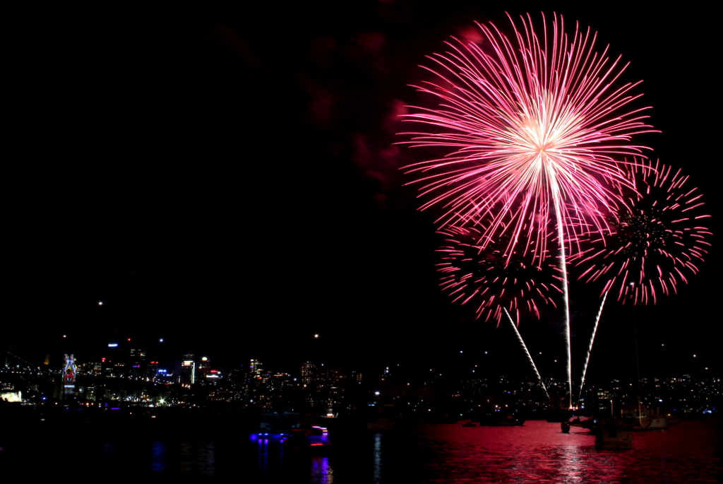 At 9pm we got a teaser to keep us going: a mini version of the midnight show referred to as the family fireworks. The next three hours we spent listening to the live music, exploring the venue, and setting up our photography gear, including a tripod my local colleague had lend us. If you want good pictures, you must use a DSLR camera, a tripod and learn a bit about manual settings (lots of easy info on google). Finally, the time had come. Everybody was jammed on the waterfront, yelling along the countdown projected on the bridge pylons. Then the explosions of color began and it was epic.