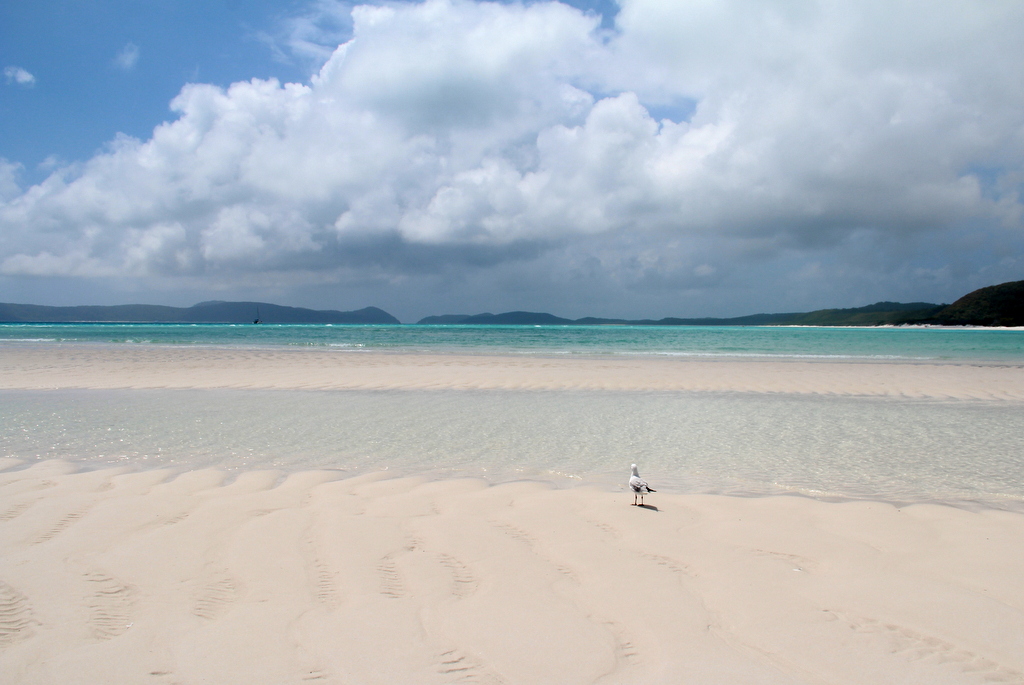 The Whitsunday are a group of little islands off the coast of central Queensland, and are technically part of the Great Barrier Reef. The main attraction here is sailing, “beaching” and snorkeling, rather than full-on diving (which is better further north, off Cairns). Although you could fly directly into Hamilton Island and stay in one of the resorts there, most backpackers fly into Proserpine, and stay in the coastal town of Airlie Beach, where they join a sailing tour. There are a ton of operators with very different prices for 1, 2 or 3 day tours, so if you have the time and patience, I recommend you do your research. All the options include similar time in Whitehaven, and the differences are really the rest of activities and the type of boat. We opted for a 2 day 2 night sailing trip, because we wanted to enjoy the bliss of sailing (the daytrips are on speedboats)… but having sailed in French Polynesia a few months earlier, thought we would get uninterested quickly.
