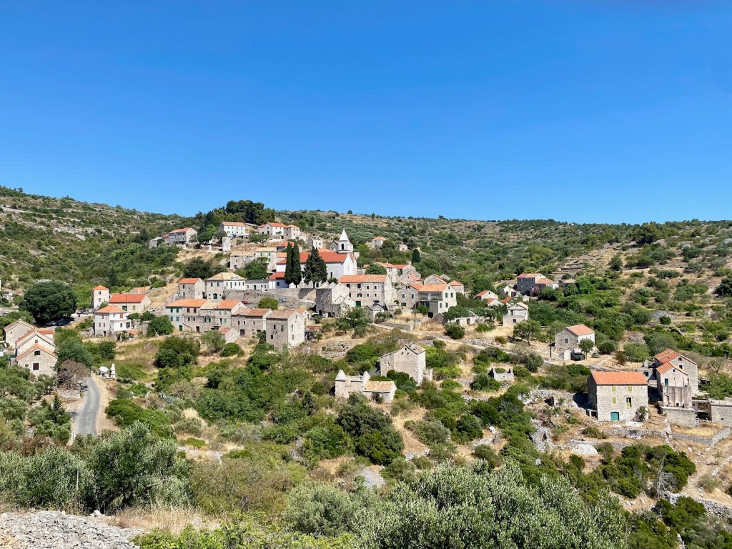 Until a few decades ago, Hvar used to be a major producer of lavender (~8% of all global output), and you still find souvenirs all over the island. On our way to Hvar town, we wanted to find some lavender fields, and we read that the best ones were around Grablje. So we took the old road, which turned out to be a very narrow, super winding mountain road (there is a reason why the built a highway and a long tunnel between Stari Grad and Hvar). We did not find more than a couple of lavender bushes, because production has massively declined, and because the harvest had apparently just happened. But it was still a fun, albeit stressful drive, and cool to see the unique village perched in the untouched mountains.