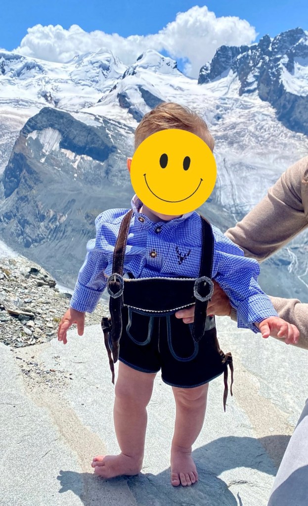 From Interlaken, where we were staying, it was going to be a long day trip, though the outstanding Swiss rail system made it not only feasible, but even enjoyable. 3 trains and about 2 and a half hours later, we arrived in the town of Zermatt. From there, we got on the cog train to Gornergrat, where we walked around loving the 360 views of the snow-capped peaks and glaciers. The Matterhorn itself was mostly covered by clouds, but we didn’t care, because it was a beautiful day and our baby boy dressed in lederhosen looked stunning.